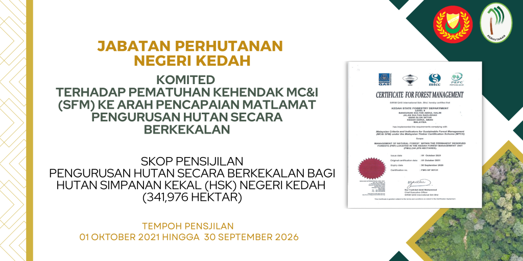 Pensijilan pengurusan hutan adalah merupakan salah satu mekanisme pengukuran pengurusan hutan bagi membantu mengurangkan proses penyahhutanan, melindungi kawasan tadahan dan kualiti air, memulihara alam sekitar dan mengekalkan kelangsungan sumber daya hutan serta meningkatkan ekonomi bagi penduduk setempat yang bergantung pada hasil hutan selaras dengan Dasar Perhutanan Semenanjung Malaysia.
